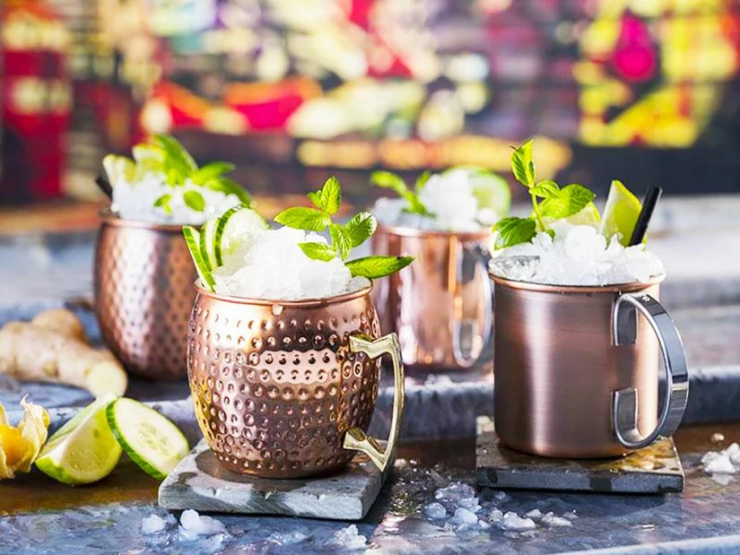 Moscow Mule is a refreshing drink that tastes like ginger beer/Ginger Ale and lime. The drink is traditionally served from a copper mug with ice and lime wedges.