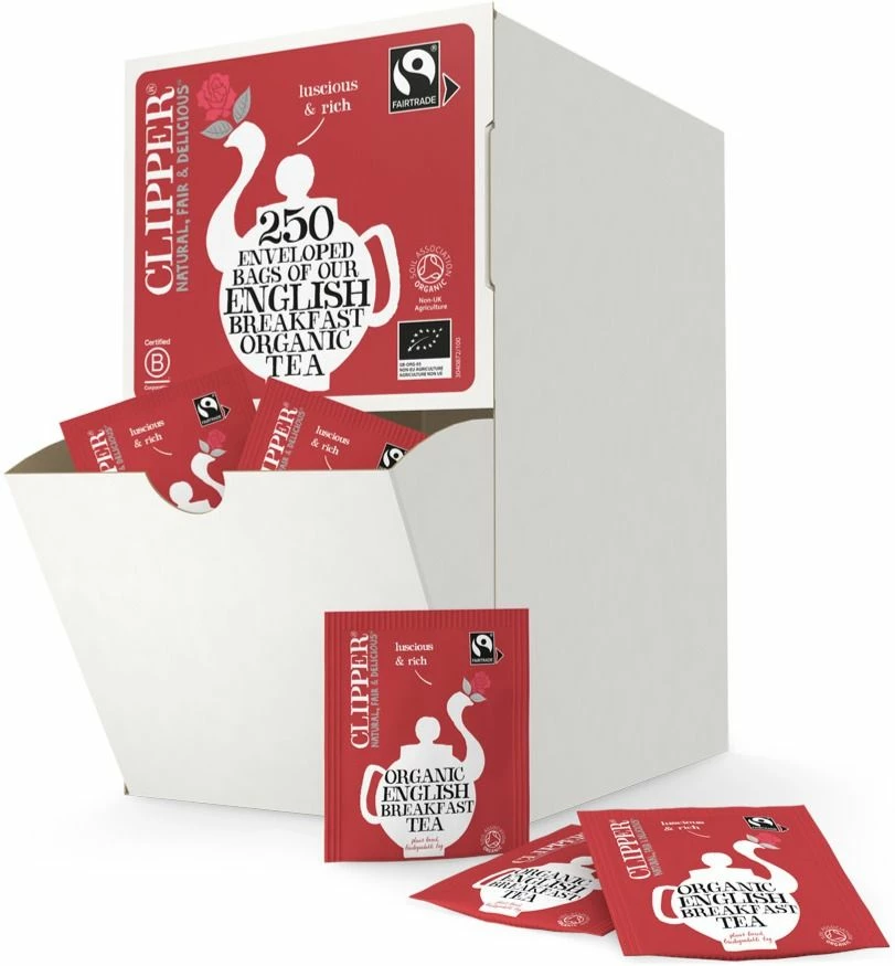 Clipper Organic English Breakfast majestic tea blend starring full-bodied Assam and wonderfully delicate Ceylon for a refreshing finish. Best enjoyed with the morning papers. The tea is blended and packaged at the Clipper tea factory in southern England.