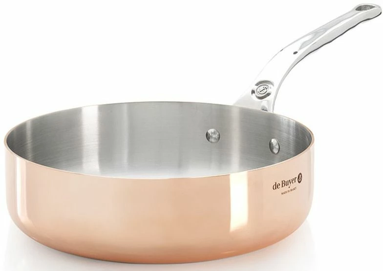 de Buyer Prima Matera copper sauté-pan ideal for fast browning, sautéing, for service, for display and for open kitchens. The straight low edges ensure good evaporation of humidity and excellent caramelisation of juices.