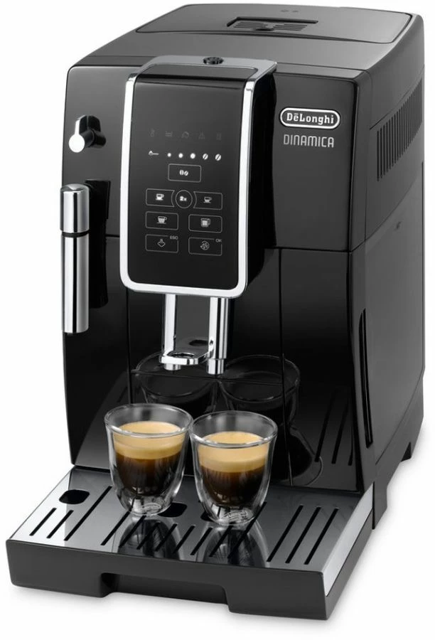 The DeLonghi Dinamica ECAM35015B automatic coffee machinefeatures a sleek design with an intuitive interface. It is simple to use with backlit touch buttons and icons, and offers personalisation and versatility with a selection of beverages available from the direct recipes.