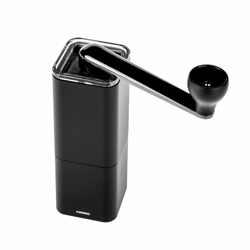 Hario PRISM is a manual coffee grinder with ceramic burrs and aluminium body. Compact, durable, with a grind adjustment – perfect for grinding coffee at home, as well as on the go.