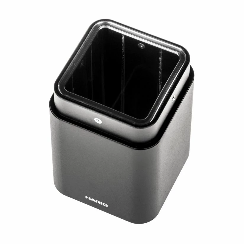 The Hario PRISM grinder has a minimalist, elegant design. A solid handle is easily detachable, with a hexagonal mounting. The base is lined with silicone rubber to prevent slipping. It grants an easy access to the ground coffee.