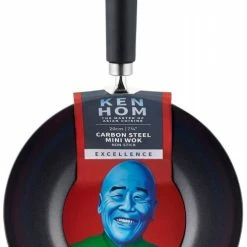 Lightweight Ken Hom Excellence carbon steel wok with three-layer non-stick coating, designed to withstand high temperatures – A flat bottom ensures even heat distribution.