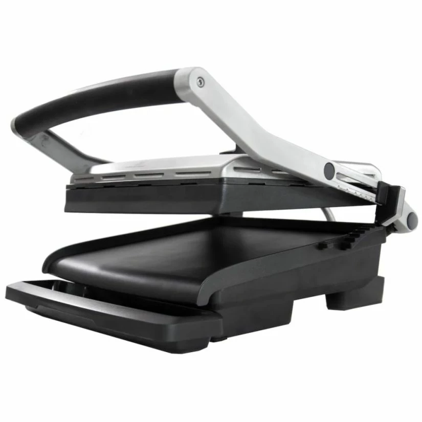 The Sage Adjusta Grill & Press has a versatile flat bottom plate and a ribbed top plate suitable for grilling, toasted sandwiches, eggs and pancakes.