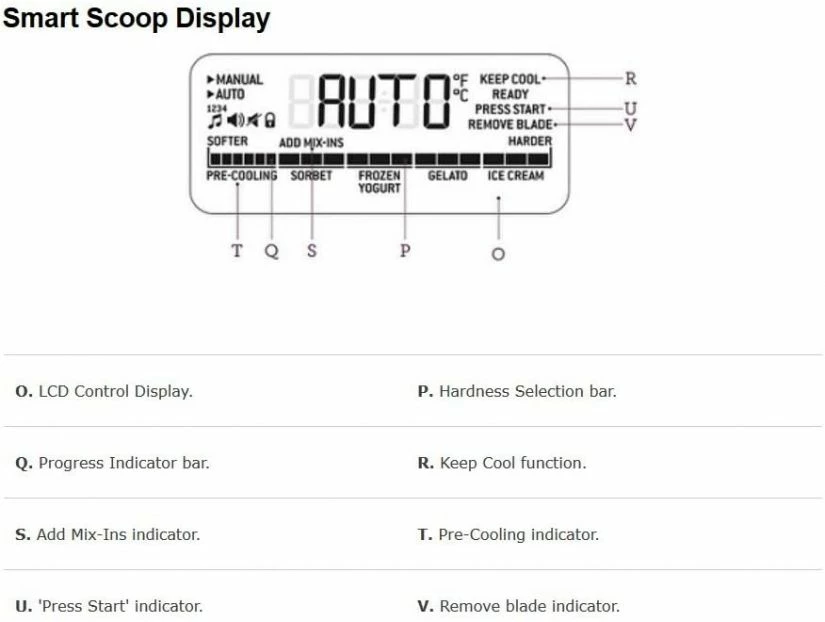 The Smart Scoop features sound such as an alert beep or music when the dessert is ready. This alert can be a beep, mute or musical tune.