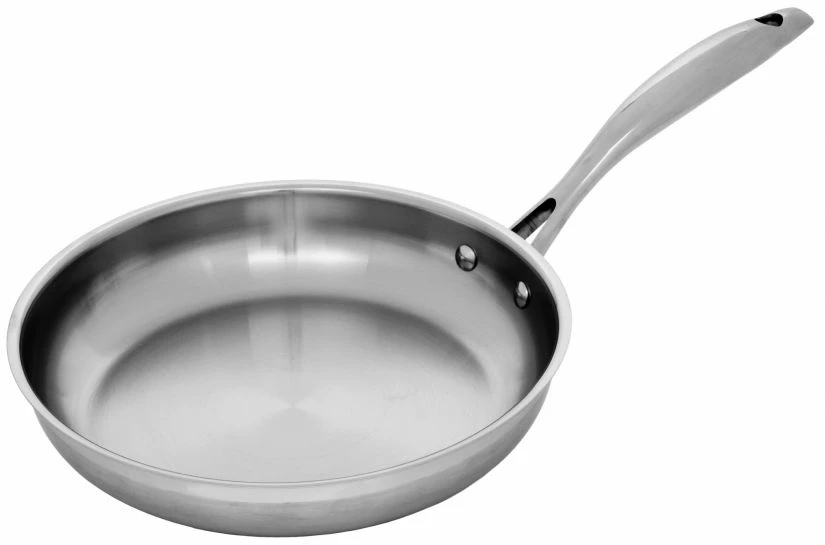 The Swiss Diamond Premium Steel fry pan has an outer layer of stainless steel, and has no sensitive non-stick coating to worry about. The Premium Steel fry pans are care-free and durable, and they can be used on all types of hobs.