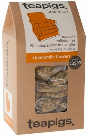 Most chamomile teas are made by crushing the flowers – not a nice thing to do. Teapigs chamomile tea comes from brewing the whole flowers – the best way to produce chamomile tea. Well known benefits of chamomile include sleep-promoting properties, relaxing muscles and soothing anxiety.