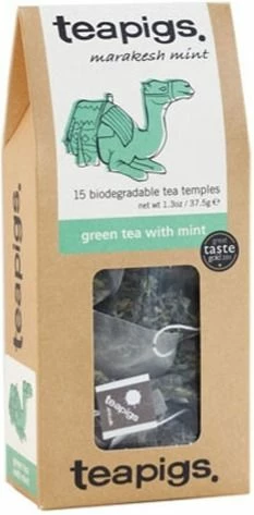 Traditional Moroccan green tea with mint is typically drunk sweet – very, very sweet. This is because they use Gunpowder Green, a tea so strong that sugar is needed to remove the astringency. Teapigs opted for a more delicate chunmee green tea known as Precious Eyebrows. Better to change the base tea than your teeth, they reckoned.