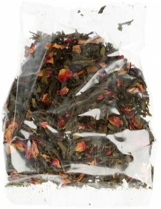 green tea, currants, rose petals, flavouring, pineapple, papaya, strawberry, raspberry.