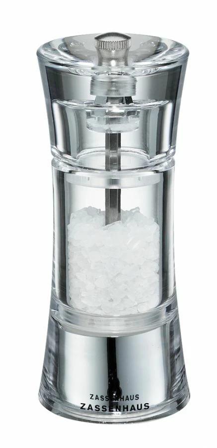 Zassenhaus Aachen is a stylish salt mill made of clear acryl. This high quality Zassenhaus grinder is manufactured in Germany and comes equipped with a precise ceramic grinding unit. The grinding can be adjusted steplessly from fine to coarse. The grinding unit has a 25 year warranty, so it is designed to be durable. The grinding unit is designed especially for pepper and salt, but you can also grind other dried spices and herbs.